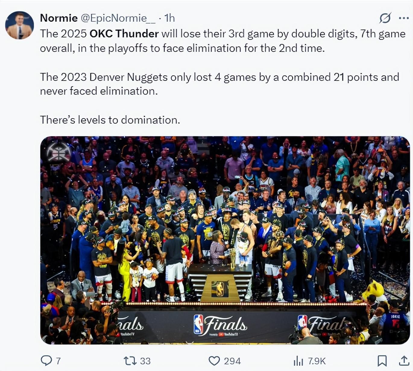 3.雷霆在今夏季后赛第三次遭遇两位数的分差失利;