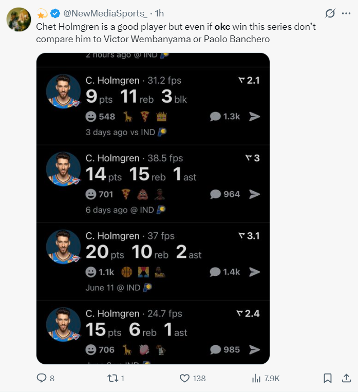 霍姆格伦上一场9分,这一场4分,美记:霍姆格伦可能是一个出色的球员,但他不该与文班亚马、班凯罗等球星相提并论。
