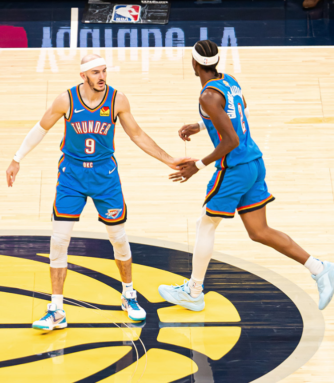 这场比赛步行者回到主场后攻防积极性提升了几个档次,内姆布哈德2个抢断,麦康1个抢断都形成了反击,内姆布哈德首节2个三分,托平首节2个三分,雷霆这边倒是出现了5次失误,若不是SGA+杰威合砍14分,首节步行者或许要拉开到7-8分左右,不得不说雷霆的双核还是太强。