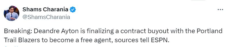Shams表示,艾顿被买断,意味着自由球员市场的突然补充。这让艾顿,这位曾随太阳队打进NBA总决赛的状元秀,在开拓者队围绕年轻中锋阵容深度进行建设之际,获得了全新的机会。此前有报道称,湖人有可能会加入竞争艾顿,对于湖人来说,这确实是一大利好。